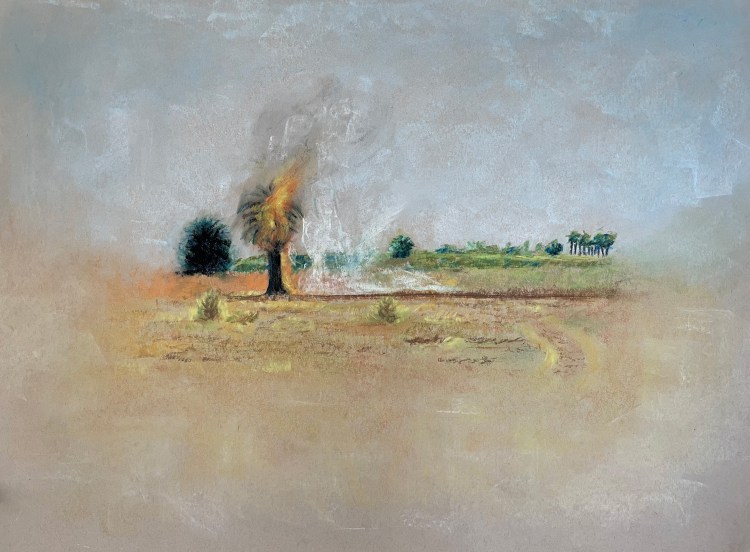 After Queen of Diamonds, 2021, pastel on toned paper, 18” x 24”